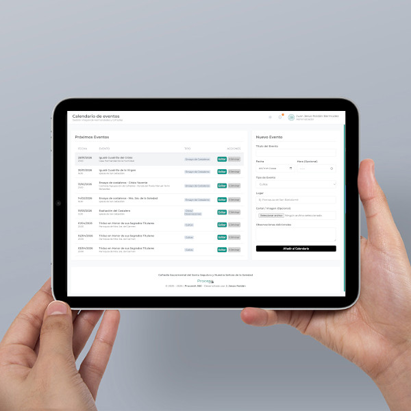 ProcesIA360 ha sido diseñado pensando en las necesidades reales de Hermandades y Cofradías. Olvida las hojas de cálculo dispersas y el papel.